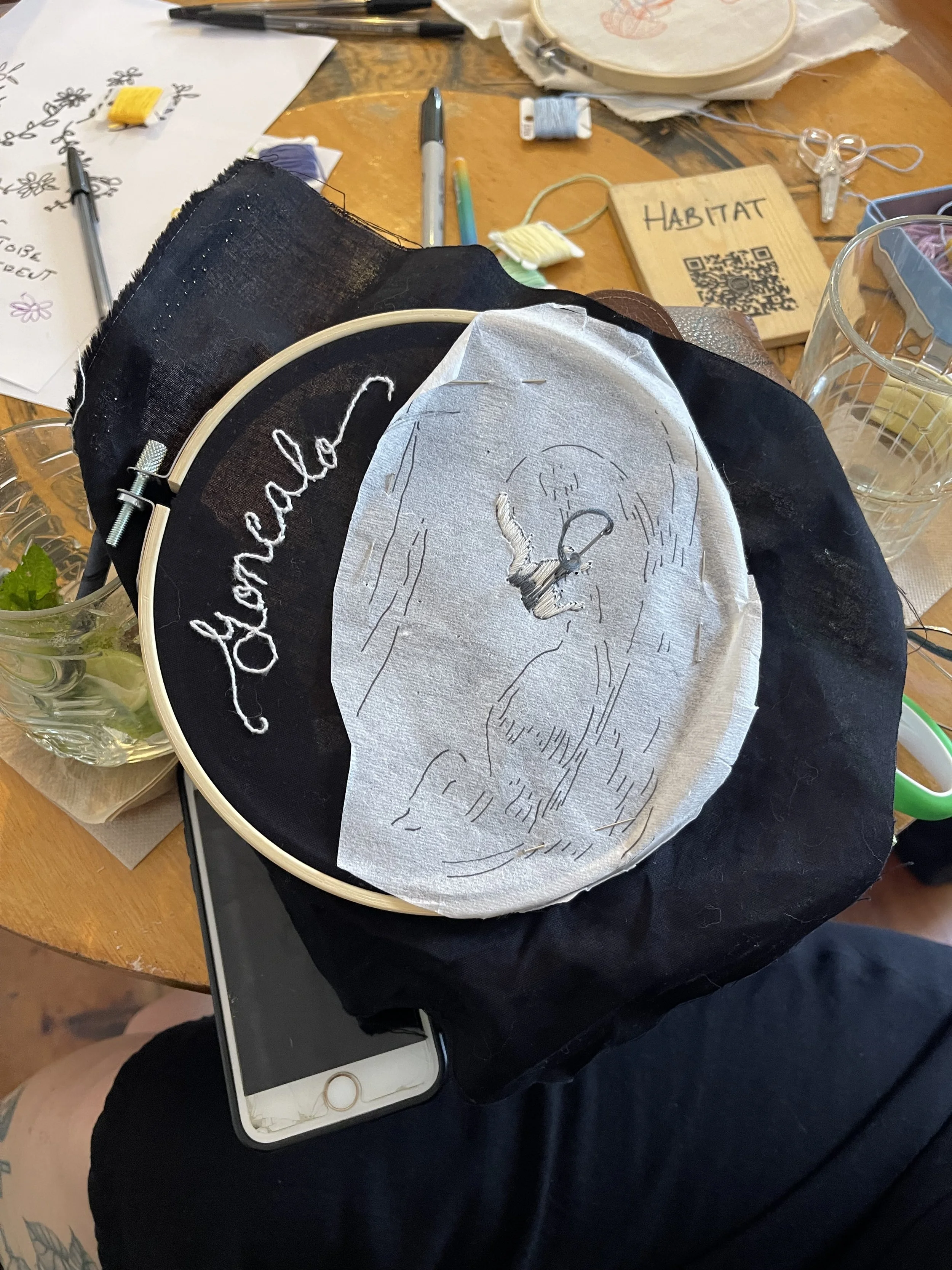Para workshops de bordado livre, podes escolher se queres trazer o teu material ou adquirir o teu kit.